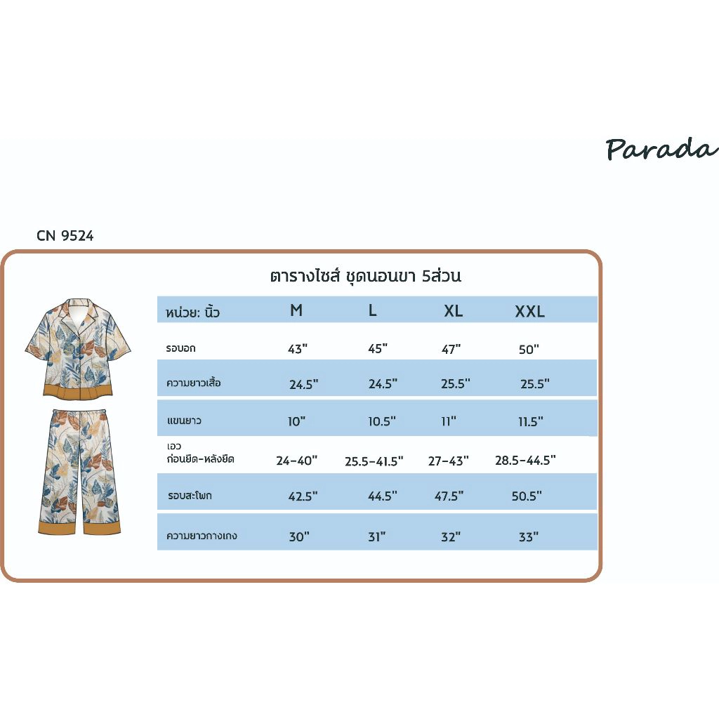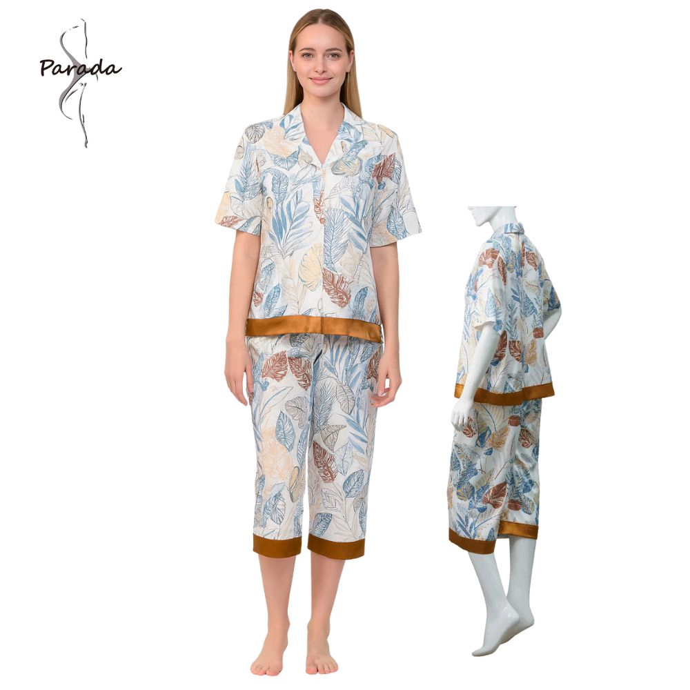 ชุดนอน ผ้าซาติน พิมพ์ลาย เสื้อ+กางเกงขา 3 ส่วน แบรนด์ Parada รุ่น CN9524