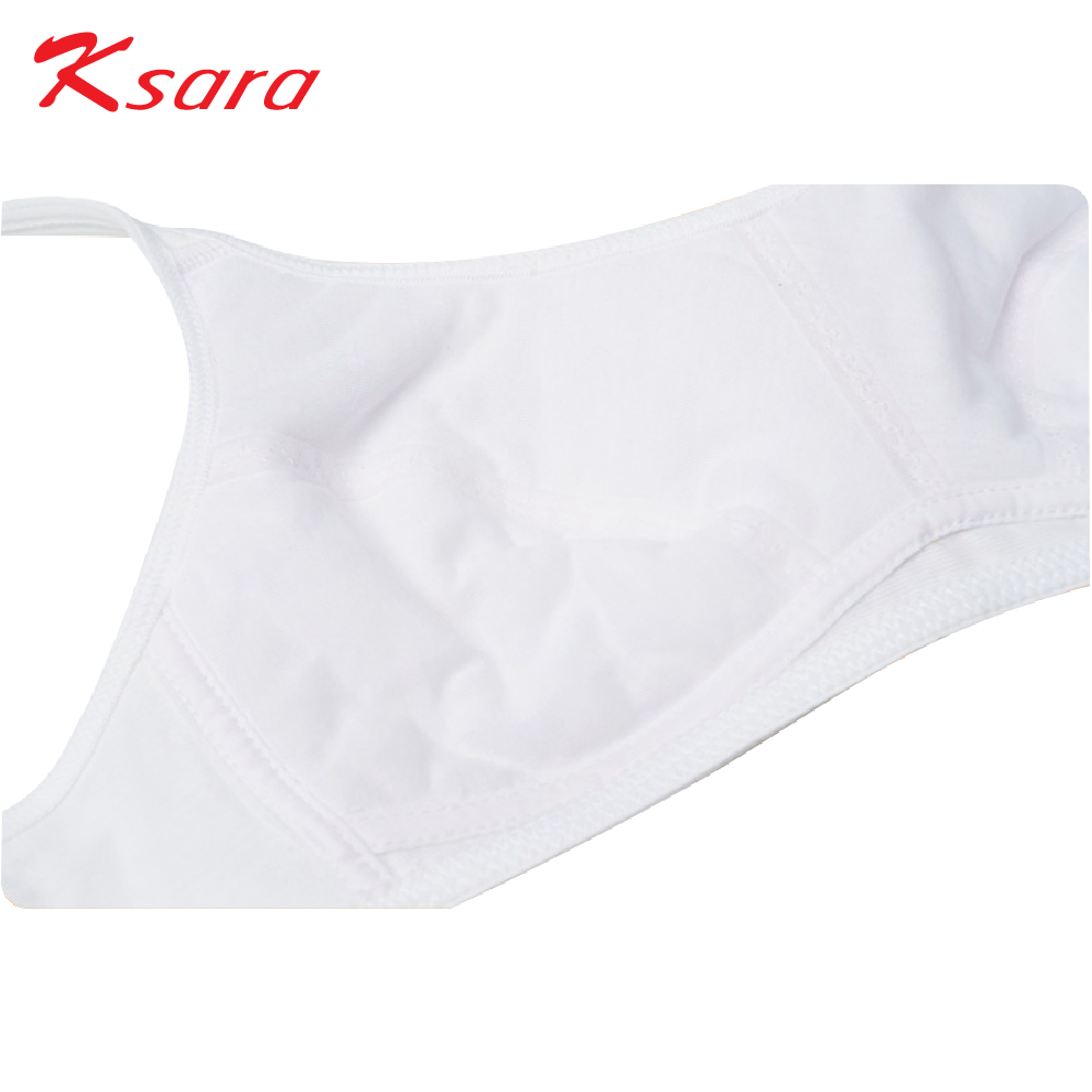 Ksara บราผ้าคอตตอนเนื้อนุ่มซักบฟองน้ำบางๆ ปรับสายบ่าได้ ตะขอด้านหลัง รุ่น KSB101 เหมาะสำหรับเด็กที่เริ่มใส่บราครั้งแรก เริ่มเป็นสาว เริ่มมีเต้าทรง ควรเลือกชุดชั้นในให้เหมาะสมกับสรีระ ของเด็กที่เริ่มเปลี่ยน เพื่อรักษาสรีระ ที่ดีในอนาคต สามารถสวมใส่เป็นเสื้อชั้นในสำหรับนักเรียนได้ แ ระบายอากาศได้ดี ไม่อับชิ้น การดูแลรักษาง่าย ซักเครื่องได้ ตกแต่งลายการ์ตูนที่กลางอก