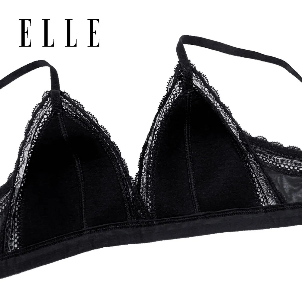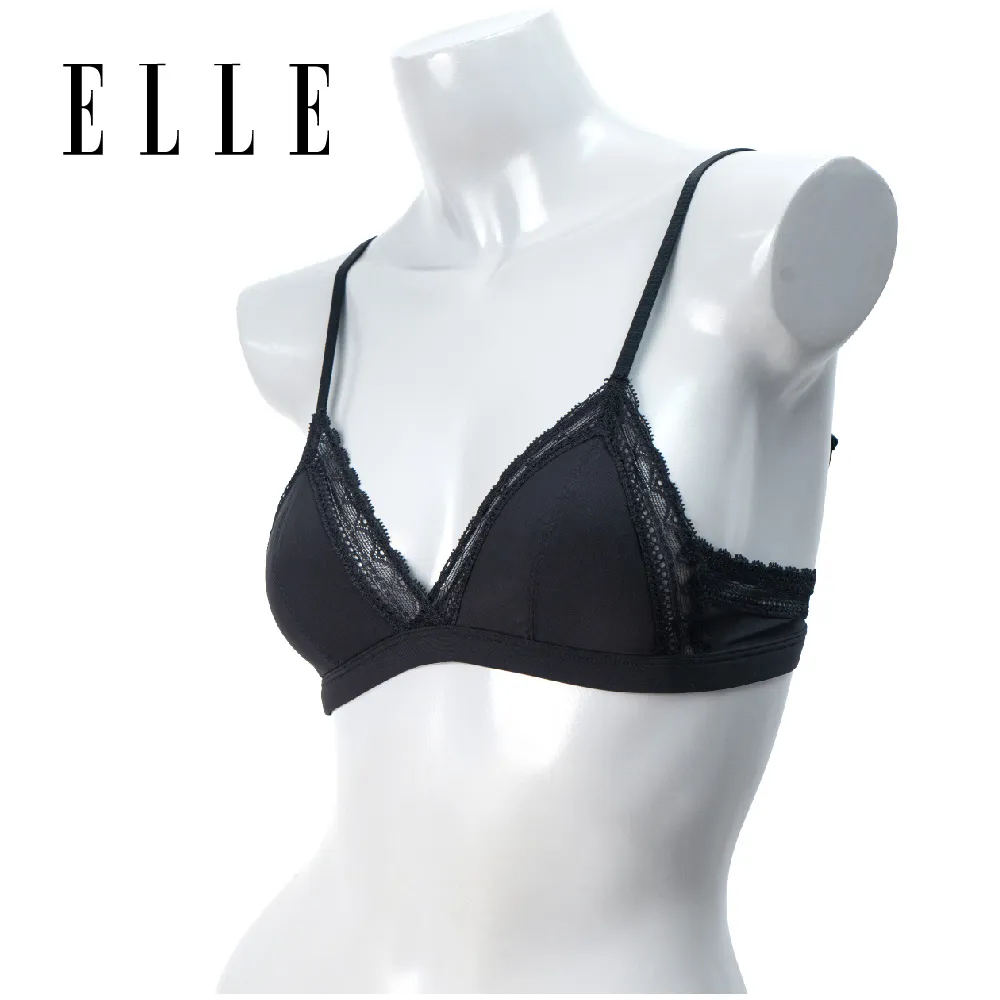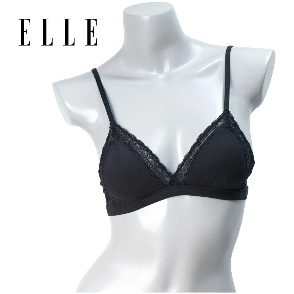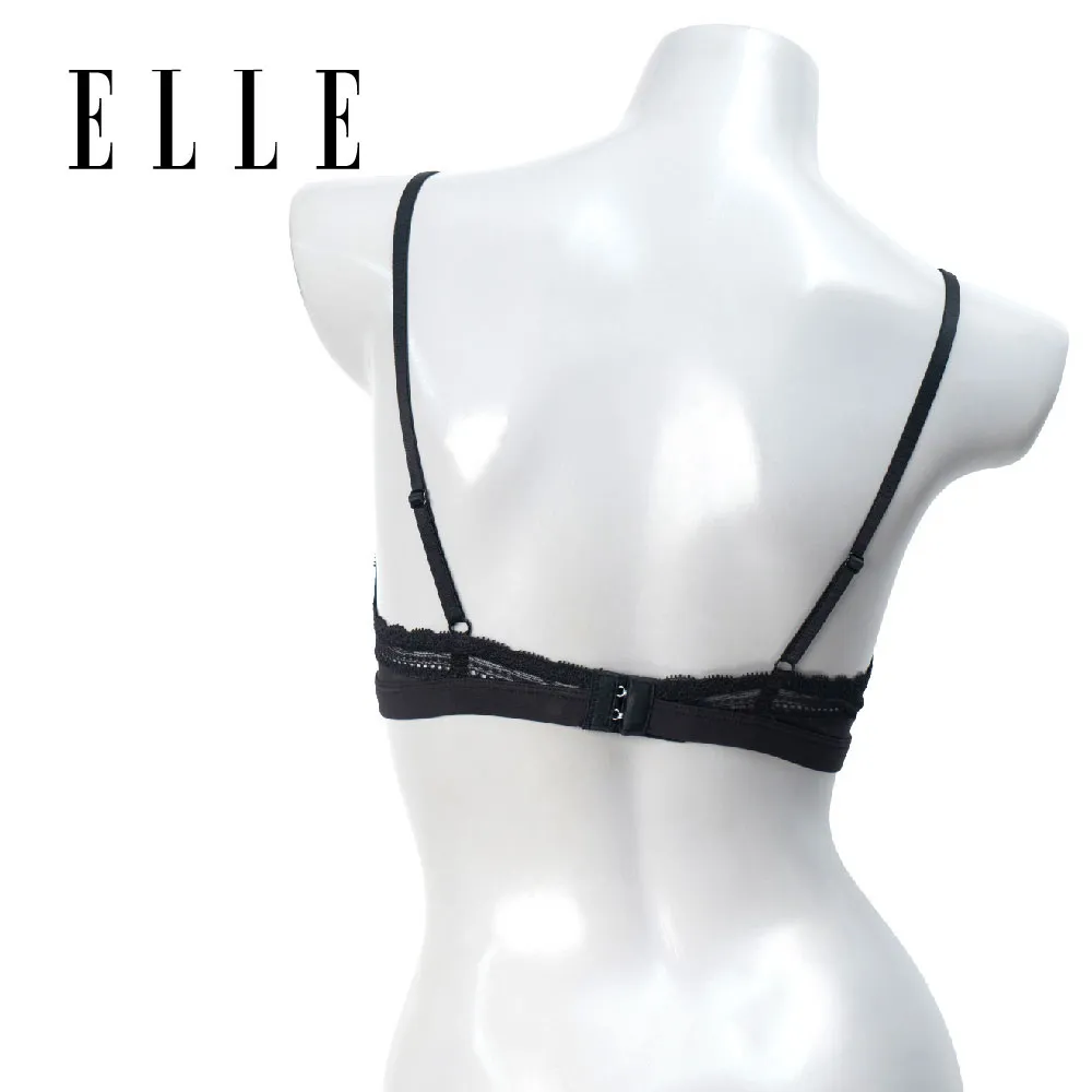 เสื้อชั้นในแบรนด์ ELLE บราไร้โครงลวด ทรง 3/4 คัพ ดีไซน์เต้าเป็นผ้าตัดต่อกับลูกไม้ ทรงเต้าสามเหลี่ยม ฟองน้ำบาง ด้านหลังเป็นผ้าเรียบตกแต่งลูกไม้ รุ่น QV1129