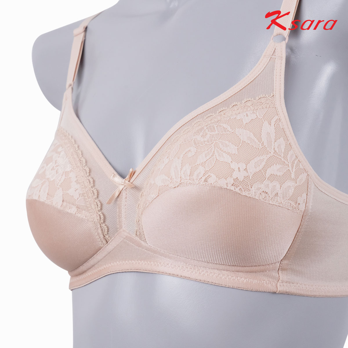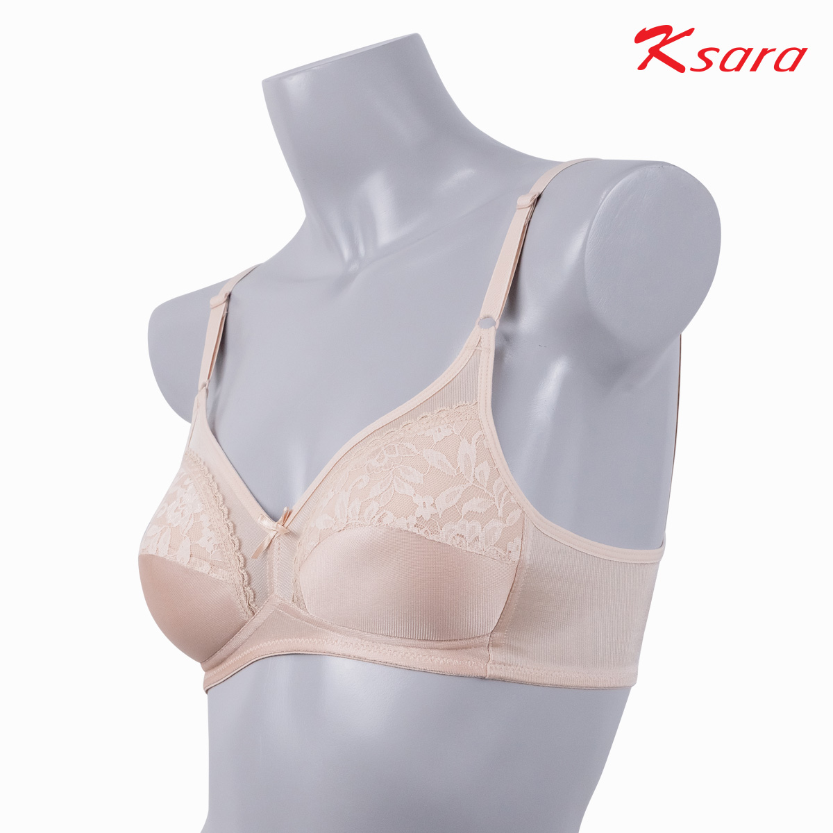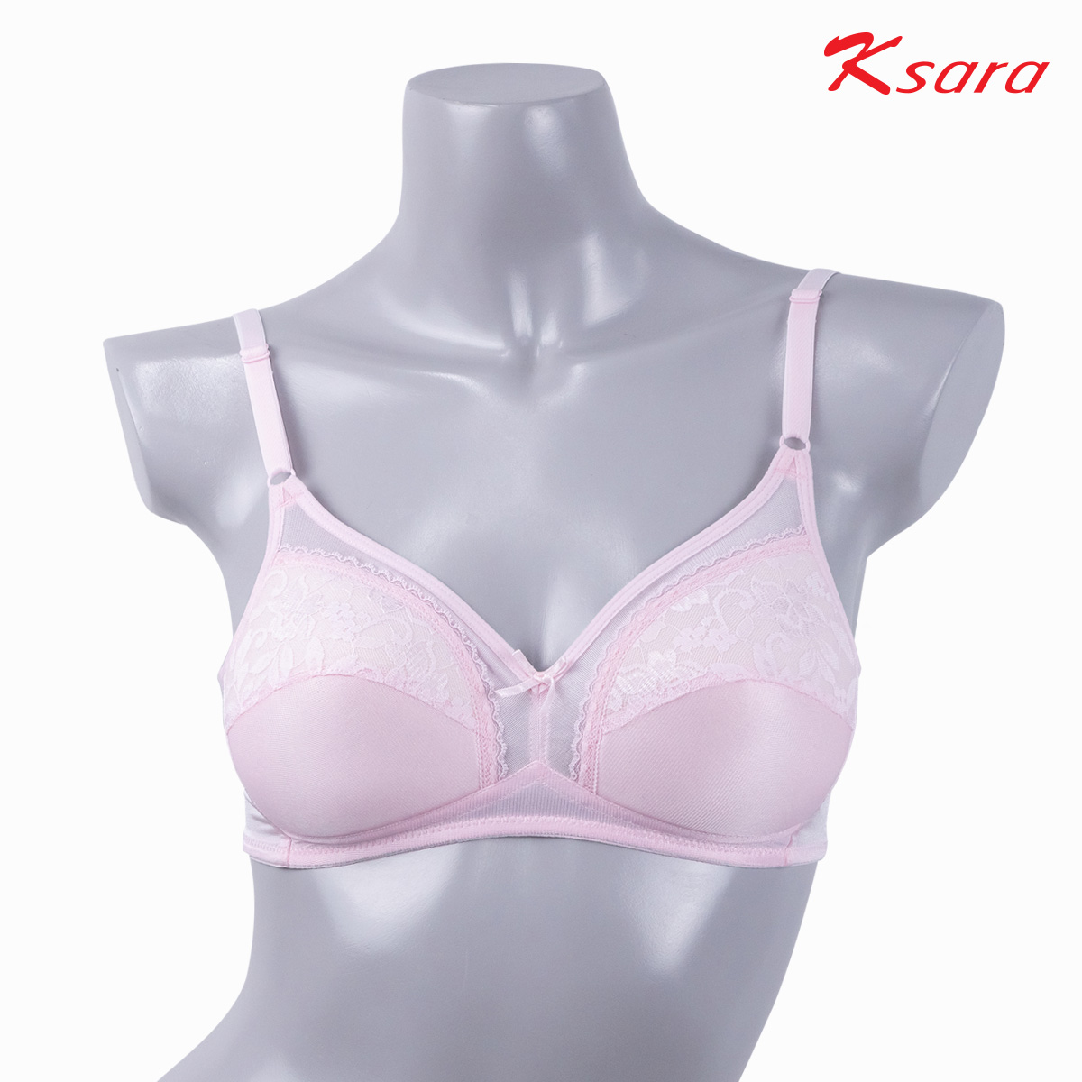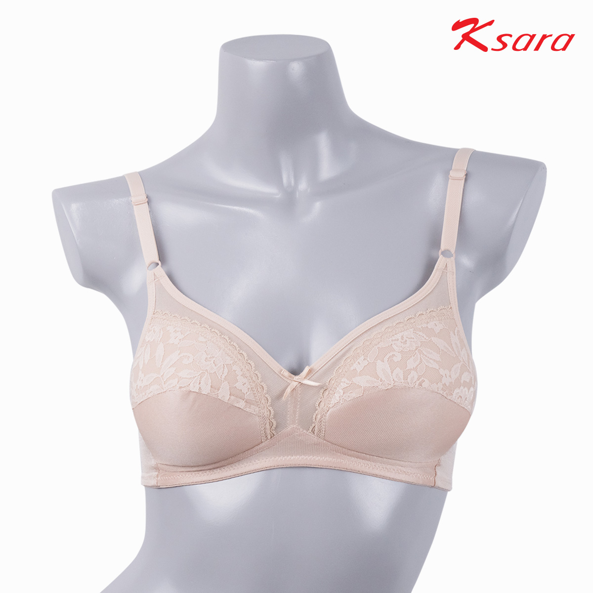 Ksara บราไร้โครงเสริมฟองน้ำตัดต่อ ฟองบาง ไม่ push up ตกแต่งลูกไม้สวยงาม ตะขอหลัง เก็บเต้าทรงได้ดี กระชับ เก็บเนื้อด้านข้างรองรับเต้าทรงให้กลมสวยดูเป็นธรรมชาติ