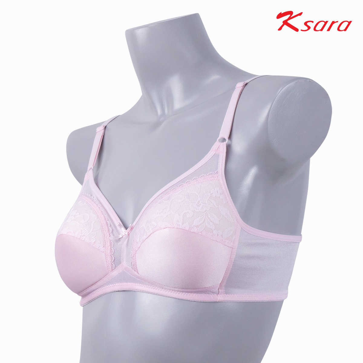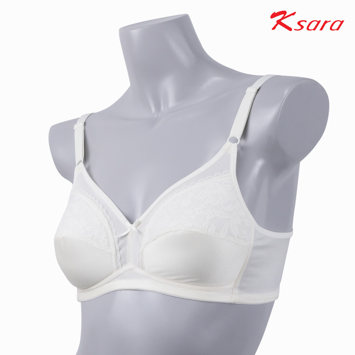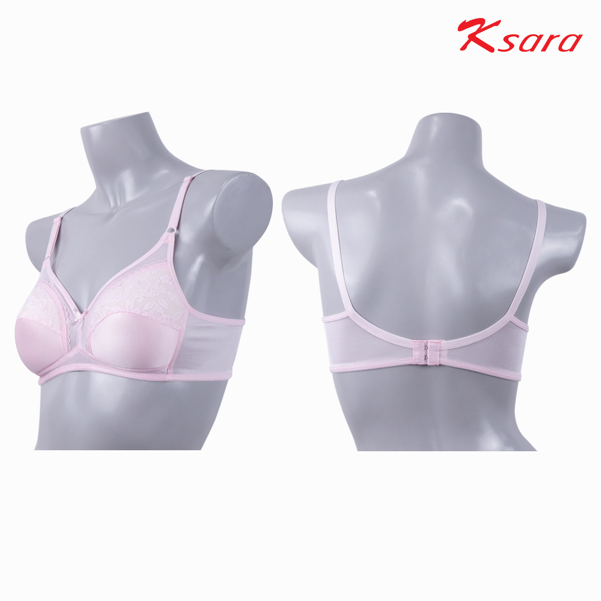 Ksara บราไร้โครงเสริมฟองน้ำตัดต่อ ฟองบาง ไม่ push up ตกแต่งลูกไม้สวยงาม ตะขอหลัง เก็บเต้าทรงได้ดี กระชับ เก็บเนื้อด้านข้างรองรับเต้าทรงให้กลมสวยดูเป็นธรรมชาติ