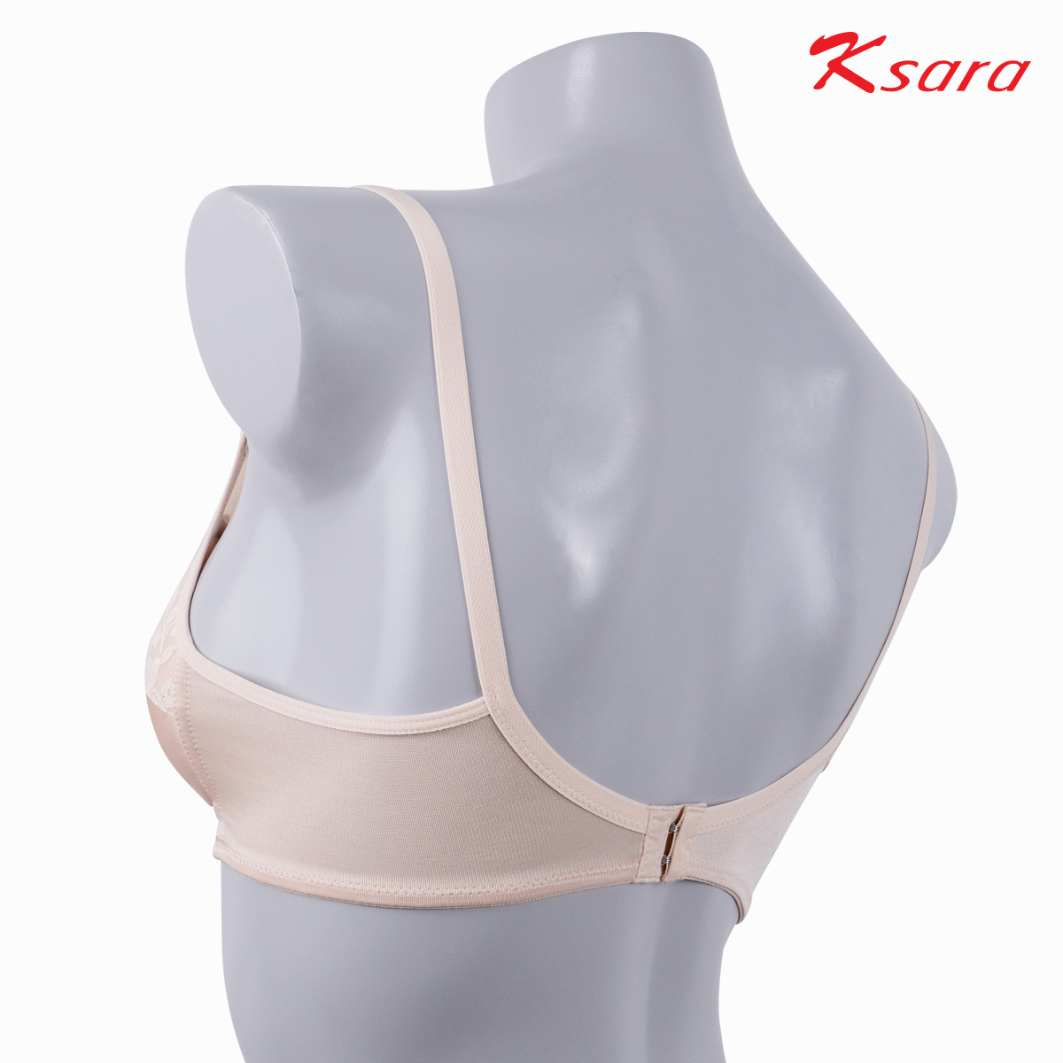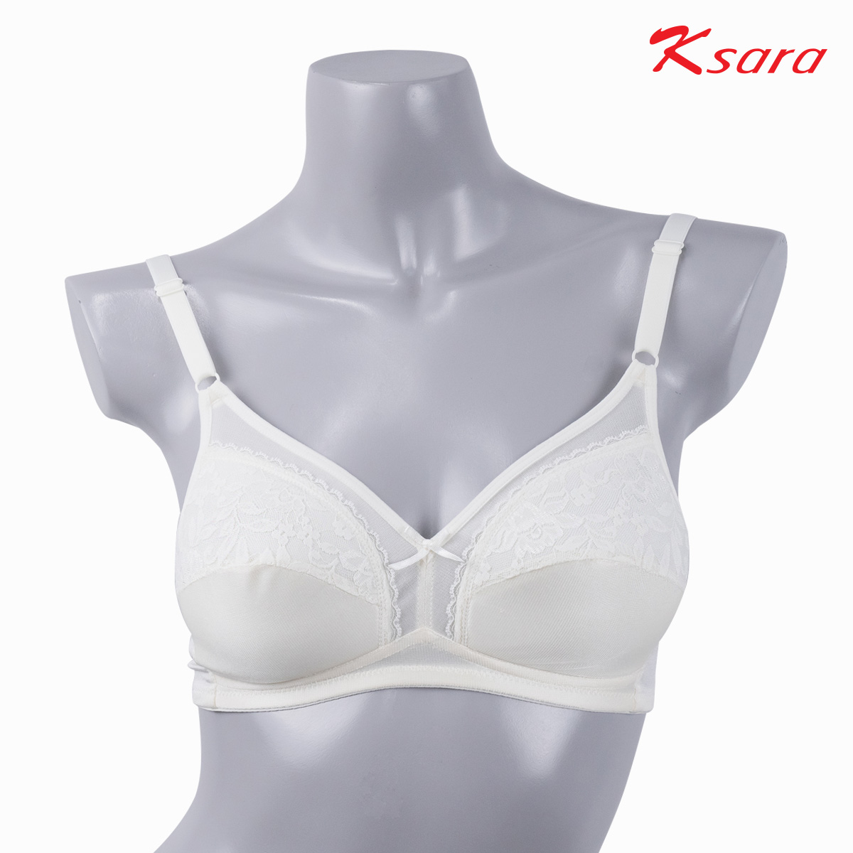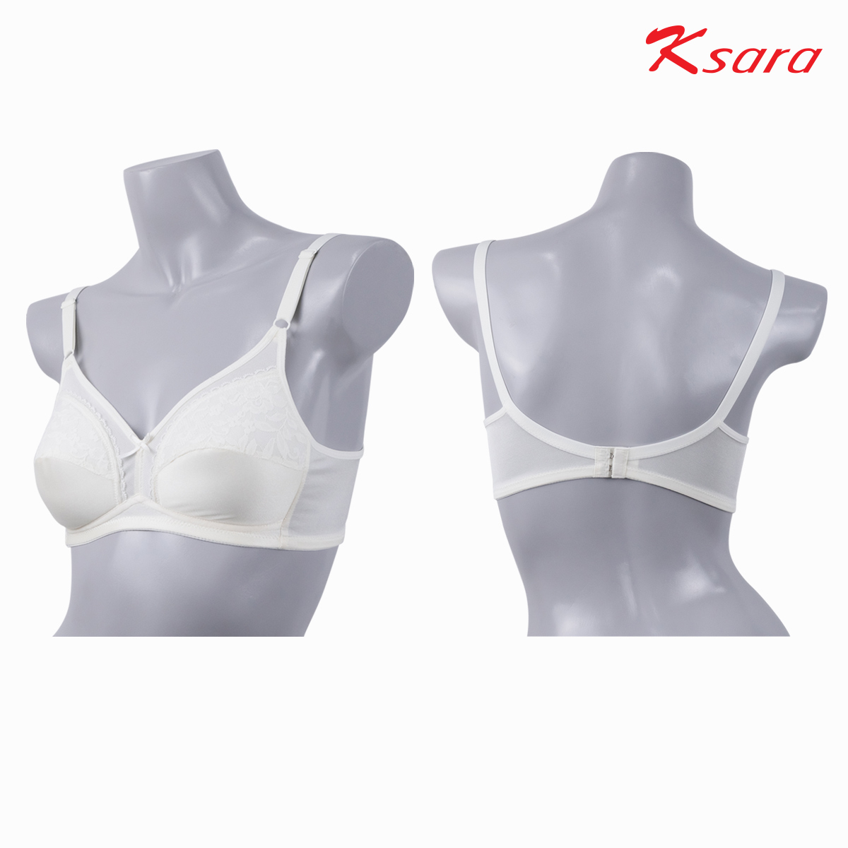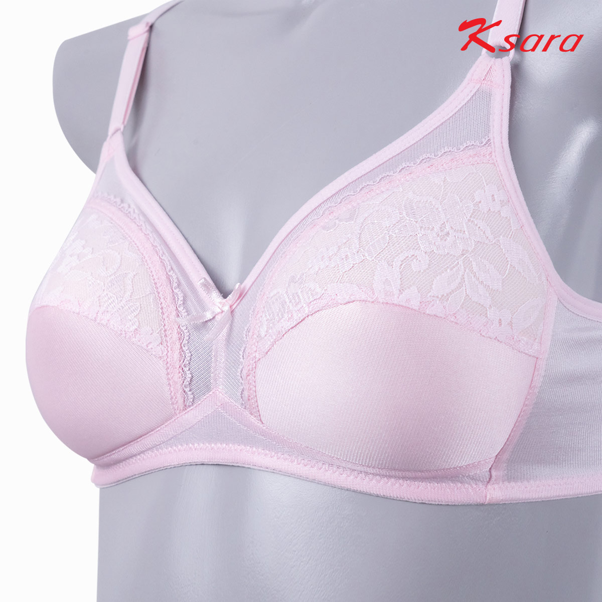 Ksara บราไร้โครงเสริมฟองน้ำตัดต่อ ฟองบาง ไม่ push up ตกแต่งลูกไม้สวยงาม ตะขอหลัง เก็บเต้าทรงได้ดี กระชับ เก็บเนื้อด้านข้างรองรับเต้าทรงให้กลมสวยดูเป็นธรรมชาติ