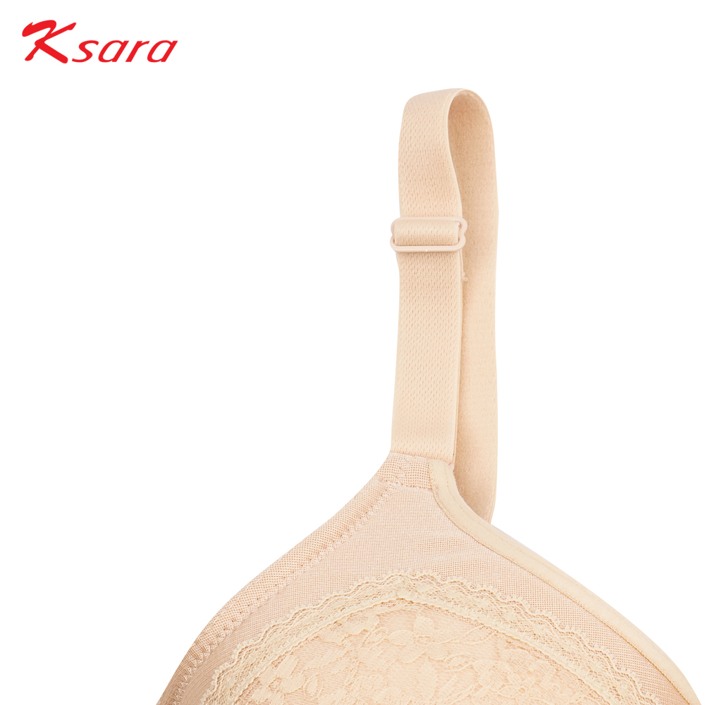 Ksara บราเสริมโครงลวด ฟองน้ำตัดต่อ ฟองบาง ไม่ push up เต้าทรงด้านนอกตกแต่งด้วยลูกไม้ เก็บกระชับด้านข้างด้วยพลาสติกโบน