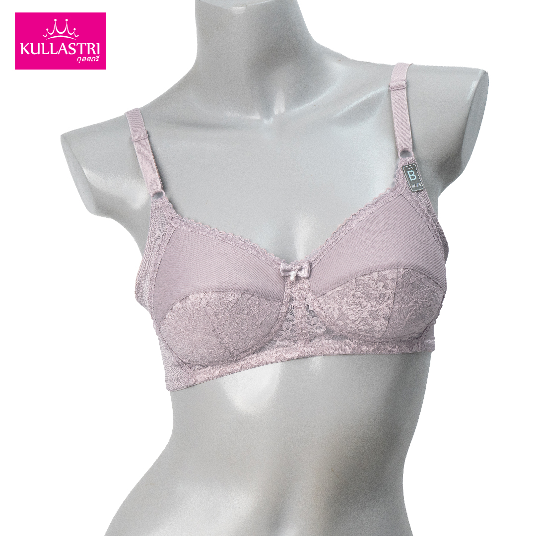 Kullastri / กุลสตรี เสื้อชั้นในไม่มีโครง ฟองน้ำตัดต่อ 3 มม.รูปแบบ 4/5 คัพ .ซับเต้าผ้าลูกไม้ ผ้าลอนพลีท รุ่น KA2845 ซับเต้าบนด้วยผ้าลอนพลีท เต้าล่างซับผ้าลูกไม้ ตกแต่งลูกไม่ริมเล็กที่ขอบบนเต้า กลางอก ติดโบว์และมุก ปรับสายบ่าที่ด้านหลัง ลำตัวหลังใช้ผ้าซาตินยืด ให้ความยืดหยุ่น กระชับ เก็บเนื้อได้ดี สวมใส่สบาย ระบายอากาศได้ดี ซักเครื่องได้