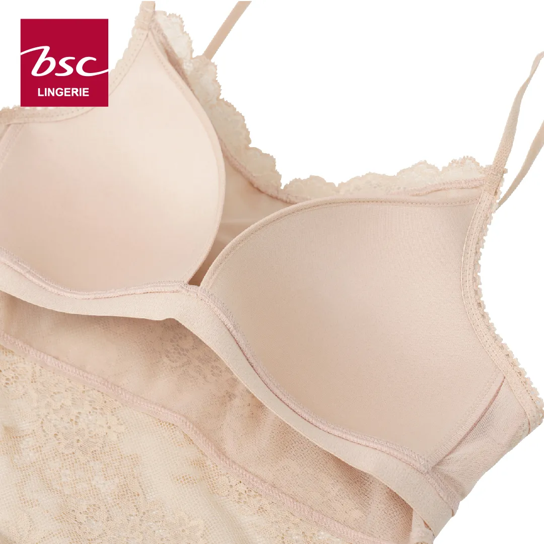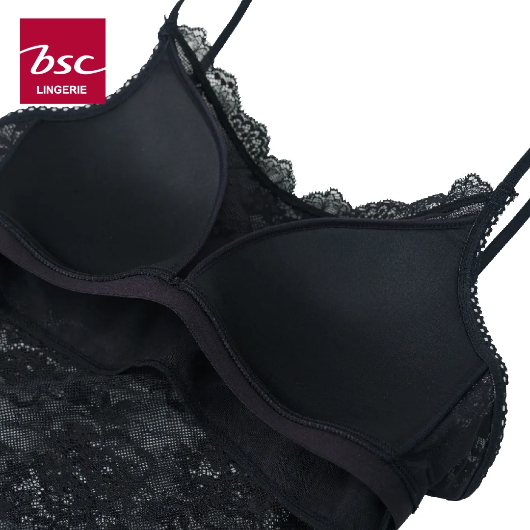 BSC เสื้อบังทรง BC1404 สายเดี่ยว ผ้าลูกไม้ทั้งตัว ฟองน้ำโมล หนา1ซม.+ยางใต้อก
